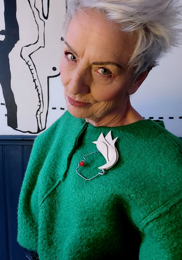 similicuir et tube plastique armé, à porter en solo ou en duo.