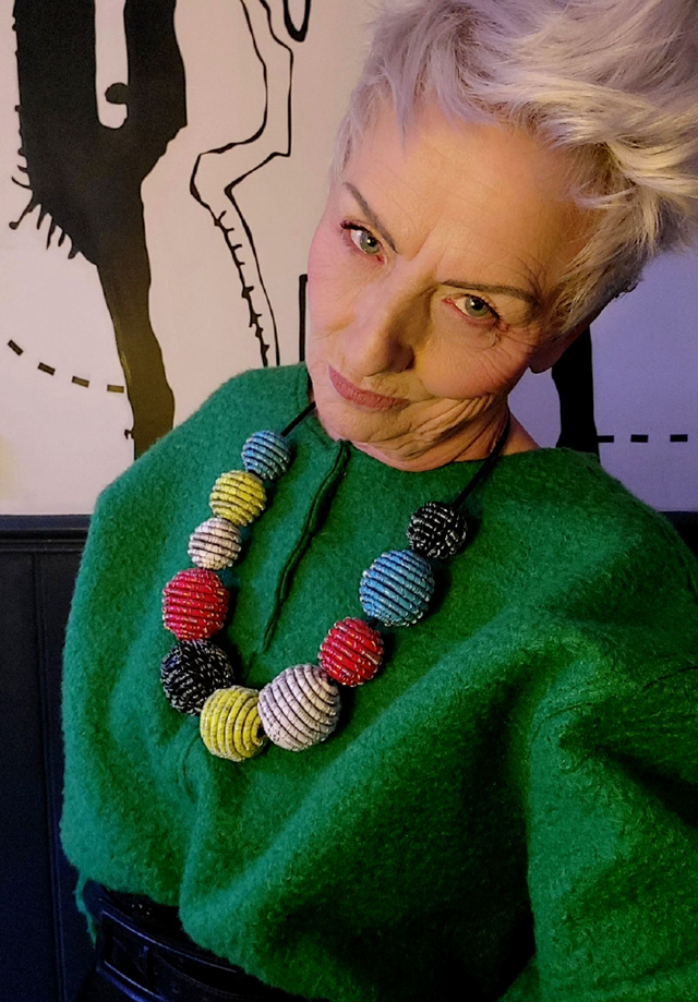 ensemble de dix perles de tailles différentes en tube polymère tressé à la main avec du fil d'inox.